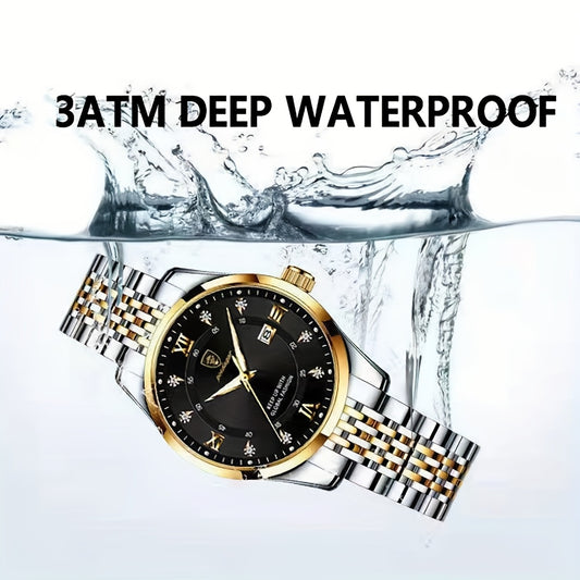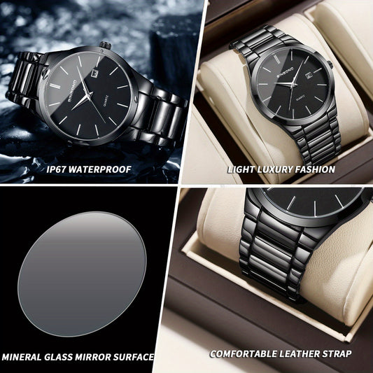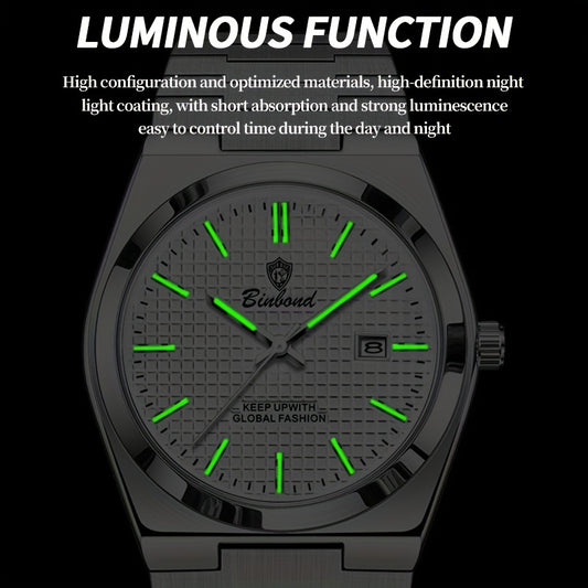 BINBOND Men'S Waterproof Quartz Watch - Casual Business Style, Luminous, Date Display, Stainless Steel Band, Round Alloy Case, Battery-Powered with Electronic Movement, Ideal for Daily Wear, Business Accessory|Minimalist Watc