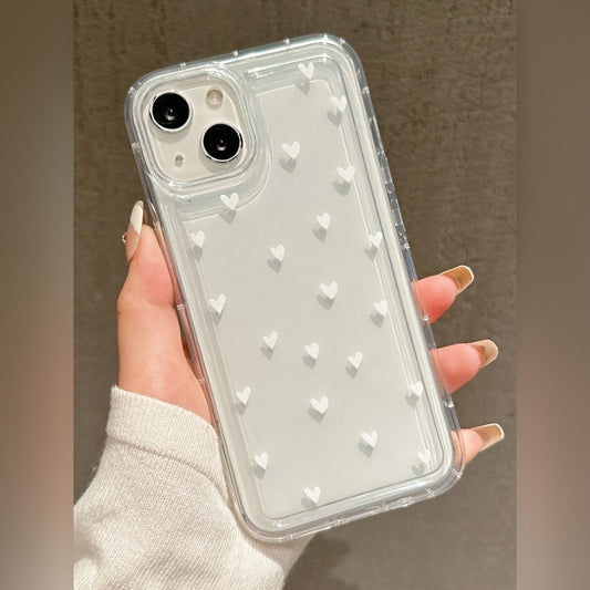 White Love Simple And Generous Transparent Anti-Fall Mobile Phone Case, Suitable for Apple Iphone 16 15 14 13 12 11 XS XR X 8 7 Mini Plus Pro Max SE Series Mobile Phone Case, Halloween Gift, Easter Gift, Birthday, Girlfriend,