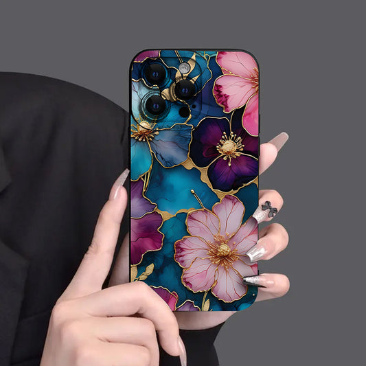 1pc New Creative Fashion Glass Flower Design Mobile Phone Case, Suitable for iPhone 16 15 14 13 12 11 X Pro Max Plus Mini Mobile Phone Case, Full Lens Protection TPU Soft Mobile Phone Case