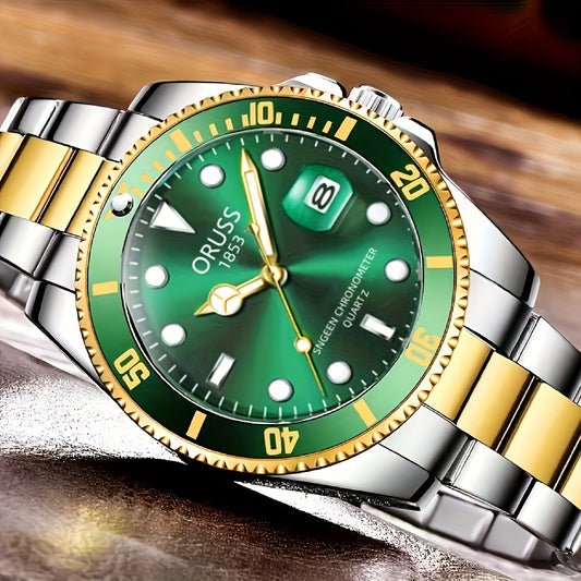 LIGE Unisex Stainless Steel Quartz Watch - Green & White Dial, Chronograph, Date Display, Rotating Bezel, Business & Sporty Design for Men and Women