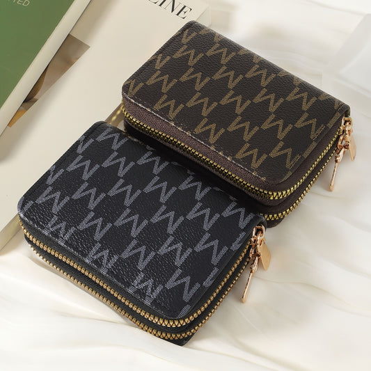 New Retro Printed Women's Minimalist Short Wallet With Double Zippers Around, Fashionable Coin Wallet, Credit Card Storage Bag, Simple And Casual Multi Card Holder