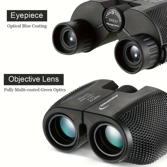 TD1025 Compact High-Quality Binoculars with 10x Magnification, 25mm Objective Lenses & Interchangeable Eyecups - Black Rubber Coated Optics for Bird Watching, Travel, Sports, Outdoor Observation, Binoculars for Bird Watching,