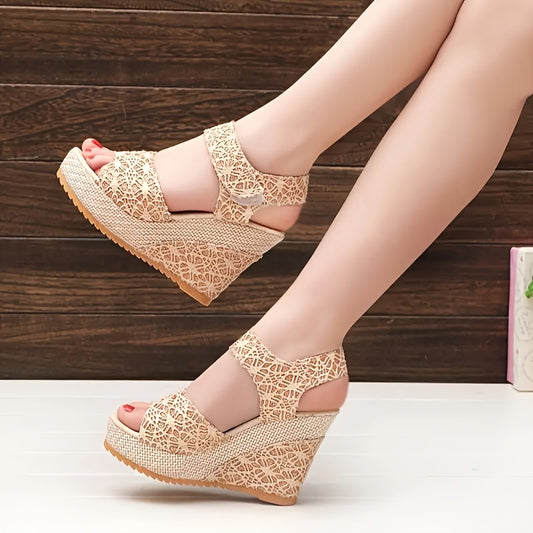 Women's Peep Toe Wedge Sandals, Fashionable Ankle Strap Slingback Platform Heels, All-Match Going Out Sandals
