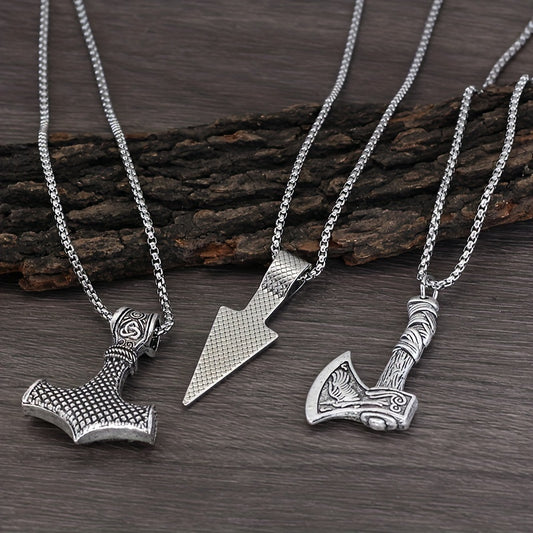 3 Pieces Of Men's Viking Necklace - Viking Hammer Nordic Compass Celtic Knot Wolf Axe Pendant Nordic Amulet Pendant Necklace Holiday Jewelry Gift