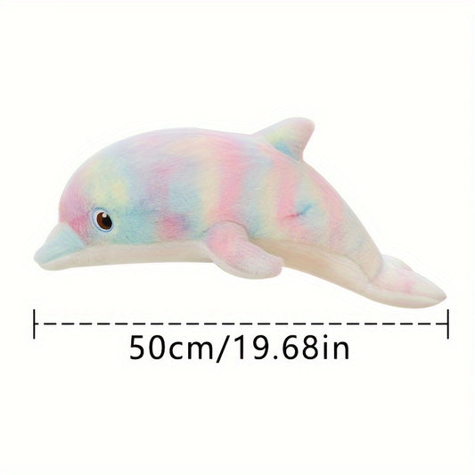 1pc Colorful Dolphin Plush Toy, 49.99cm Soft Polyester Stuffed Animal, Cartoon Marine Life Gift, Video Game Themed Home Decor, Ideal for Christmas, Valentine's, Birthday Presents