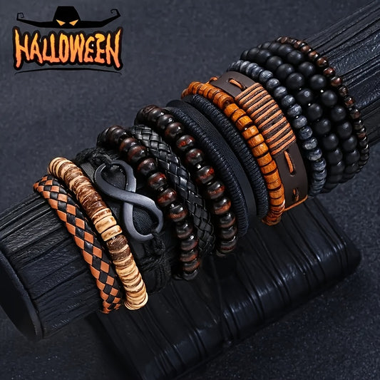 13pcs Vintage Woven Fashion Black Figure-8 Men's Bracelet Set, Daily Wear Gift for Casual Parties, Fashion Accessory (No Box Included) - Christmas, Halloween, New Year Gift