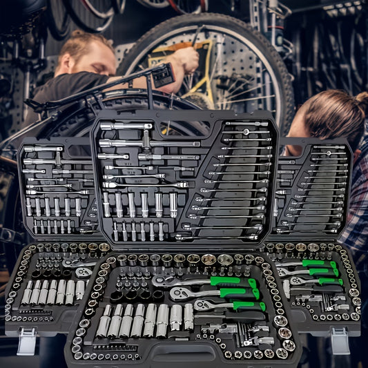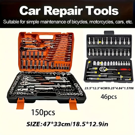 151/46pcs Automotive And Motorcycle Repair Tool Kit - Made of Durable Chrome Vanadium Steel, Includes Ratchet Wrenches And Screwdrivers.