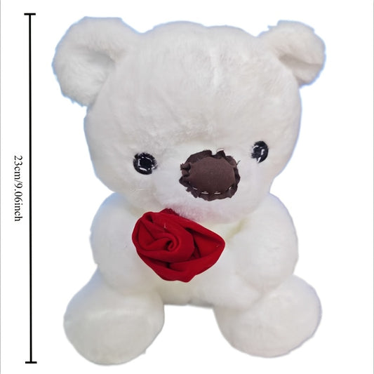 1pc Cute Teddy Bear Plush Toy Holding a Rose - Soft Hugging Stuffed Doll, Multicolor Cuddly Gift Suitable for,, Bedside, Christmas, Valentine's Day & New Year Decorations