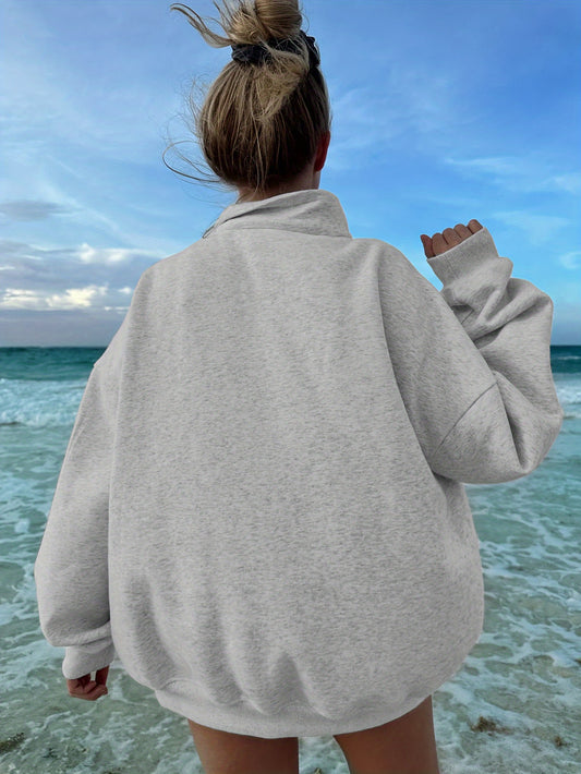 Women's "California Los Angeles" Letter Print Lightweight Zip-Up Sweatshirt - Casual High Neck, Long Sleeve, Polyester, Machine Washable - Perfect for All Seasons