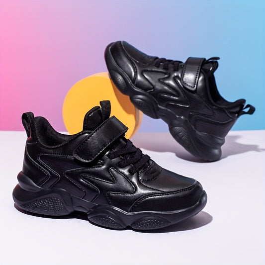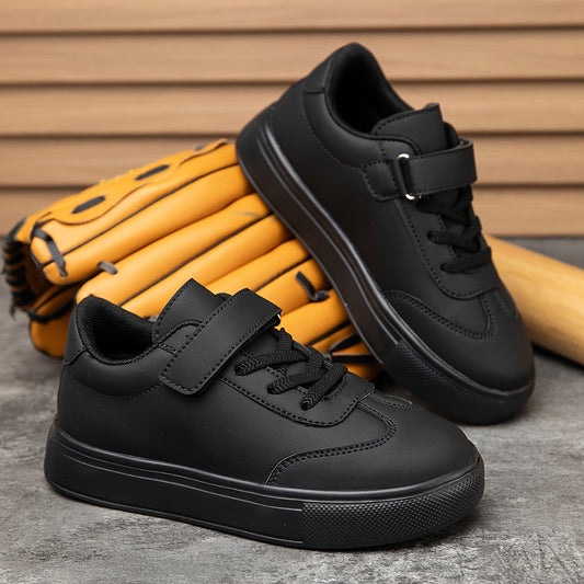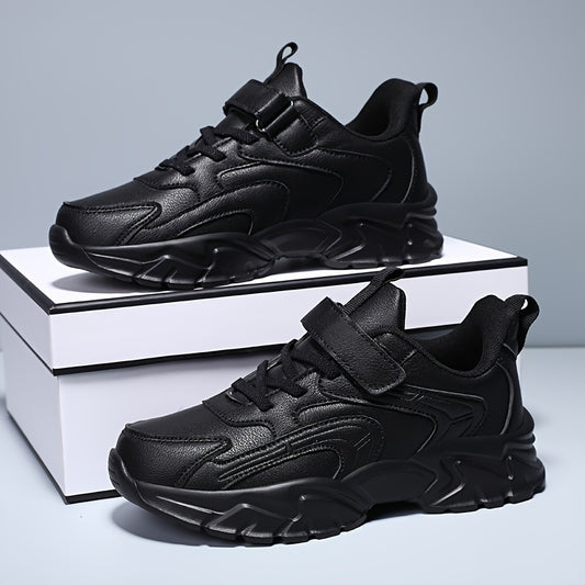 Youngsters' Lightweight Breathable Sneakers with Closure - Slip-Resistant EVA Sole, Easy-Clean Black Casual Shoes for Outdoor Play, Training & Daily Wear - All-Season Comfort for Boys & Girls, Youngsters Sneakers, Sleek Young