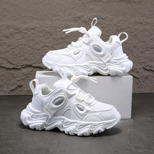 Youngsters' White Chunky Sneakers - Adjustable Hook-and-loop Fastener Strap, Easy Slip-On, Non-Slip EVA Sole, Comfortable Lining, Versatile for School and Sports, All-Season Wear, School Sneakers|Trendy Chunky Sneakers|Durabl