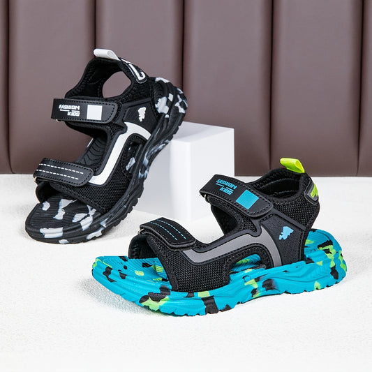 Pair of Boys' Summer Barefoot Sandals with Random Print, Fashionable Buckle Strap Outdoor Beach Sports Sandals Quick-Drying Lightweight EVA Shock Absorption Soles Breathable and Wear-Resistant Casual Sandals