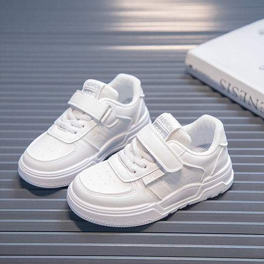 Youngsters' Stylish White Skate Sneakers - Casual & Sporty Low-Top Shoes with Hook-and-loop Fastener Closure, Breathable Fabric Lining, Durable Rubber Sole for Boys & Girls, Perfect for Running, Walking & Casual Attire, Skate