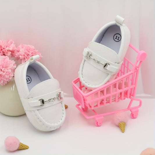 1 Pair Girls' Vintage Style Faux Leather Loafers - Casual Slip-On Walking Shoes with Rubber Sole, Round Toe, and Anti-Slip Features for Toddlers and Kids 14 Years and Under