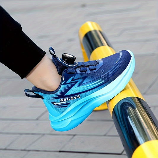 Youngsters' Rotating Buckle Sneakers - Breathable Mesh Sneakers for Boys and Girls, Navy Blue with Striped Design, Lightweight EVA Sole, Casual & Running Wear, Hand or Dry Clean Only