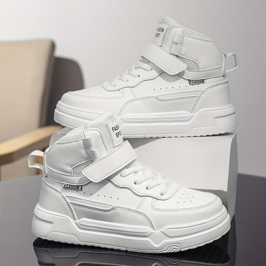 Boys & Girls Mid-Top Sneakers with Closure - Lightweight PU & EVA Cushioned Sole, All-Season Comfort for School, Play & Casual Wear - White