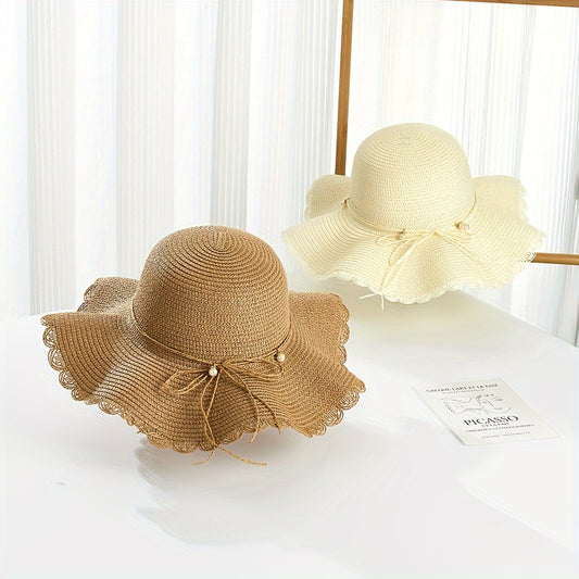 1pc Elegant Wide-Brimmed Bow Sun Hat for Women - -Proof Breathable Straw Beach Hat with Adjustable Opening, Solid Color Design for Weddings, Outdoor Leisure, Spring & Summer, Wedding Accessory, Secure Fit Design