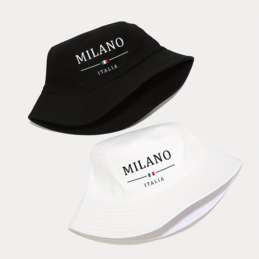 1pc MILANO ITALY Printed Bucket Hat - Lightweight Breathable Sun Hat with Italian Flag Design, Foldable Fisherman Cap for Men & Women, Outdoor Sports Travel, Spring Summer (Black/White), Vacation Headwear