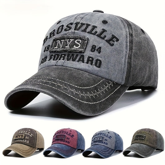 Vintage Style Unisex Baseball Cap, 100% Cotton Embroidered NYS Letter Design, Adjustable Dad Hat for Sports and Sun Protection, Hand Washable