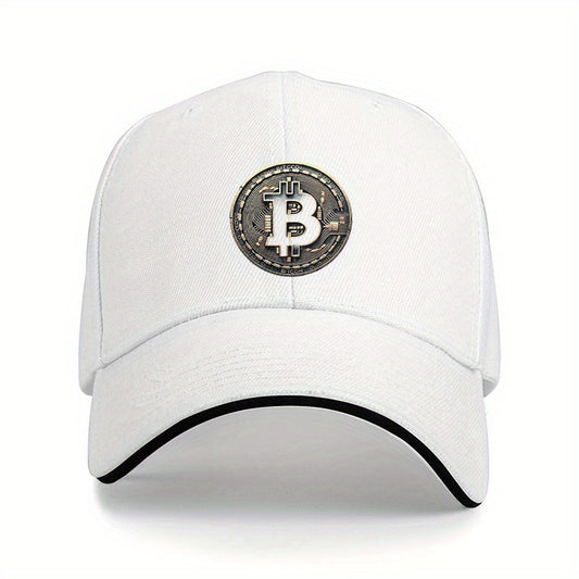 [Adventure Ready] Adjustable Bitcoin Logo Baseball Cap - Lightweight, Soft Polyester Dad Hat with White Accents, Ideal for Outdoor Activities, Fit, Outdoor Headwear | Sleek Cap Design | Durable Headgear