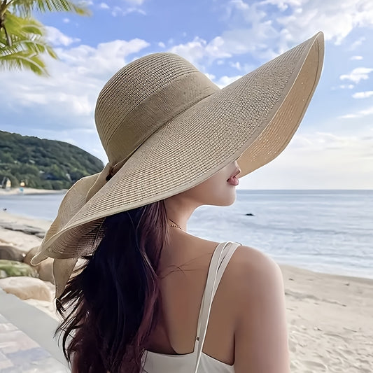 Chic Wide Brim Straw Sun Hat for Women - Summer Beach & Travel Cap with Adjustable Drawstring, Breathable Paper Material