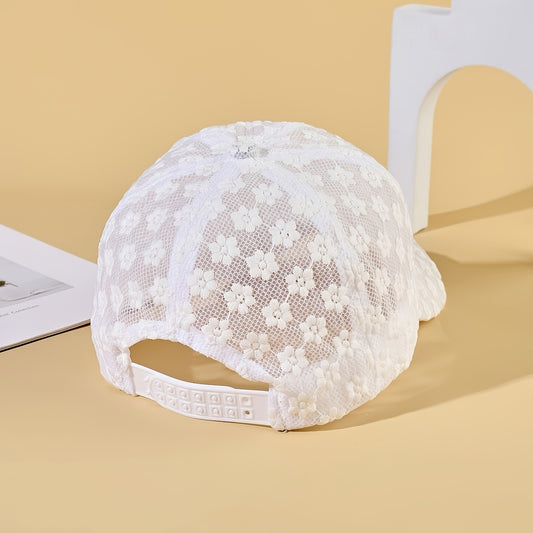 Women'S Summer White Lace Flower Baseball Cap - Breathable, Stretchy, Snap Closure, Stylish and Versatile, Hand Wash Only, Summer Cap|Stylish Headgear|Breathable Fabric