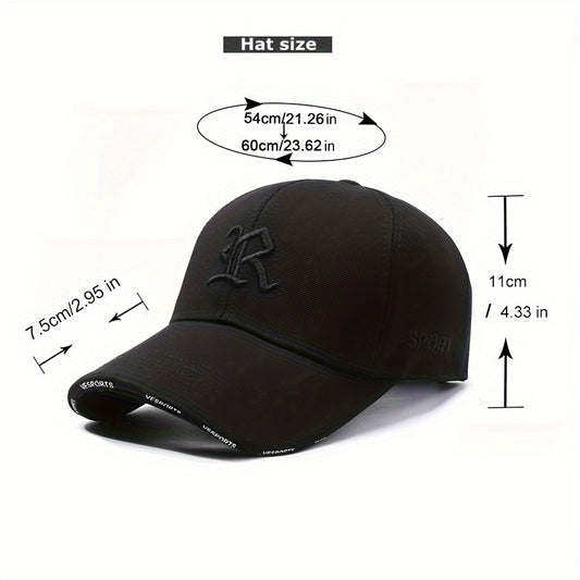 "R" Embroidered Baseball Cap - Sleek Black Dad Hat with Curved Brim, Comfortable & Breathable, Ideal for Outdoor Activities, One Size Fits All