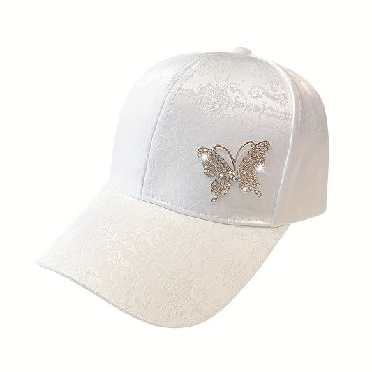 Stylish Rhinestone Butterfly Baseball Cap for Women - Lightweight, Adjustable, and Versatile Sun Hat with Lace Print Design, Perfect for Spring, Summer, and Fall, Casual Headwear | Butterfly Embellishment | Lightweight Hat