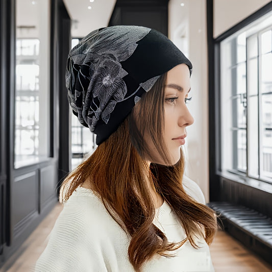Boho-Chic Floral Print Beanie for Women - Stretchy, Lightweight & Warm Knit Cap for Autumn/Winter Outdoor Activities, Brimless, Bohemian Style