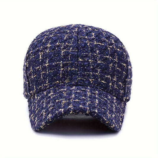 1pc Trendy Black & White Checkered Baseball Cap with Sparkly Golden Embroidery - Stylish Sun Protection Hat for Spring and Fall, Hand Wash Only, Polyester Material, Casual Wear Hat | Checkered Pattern Cap | Woven Texture Cap