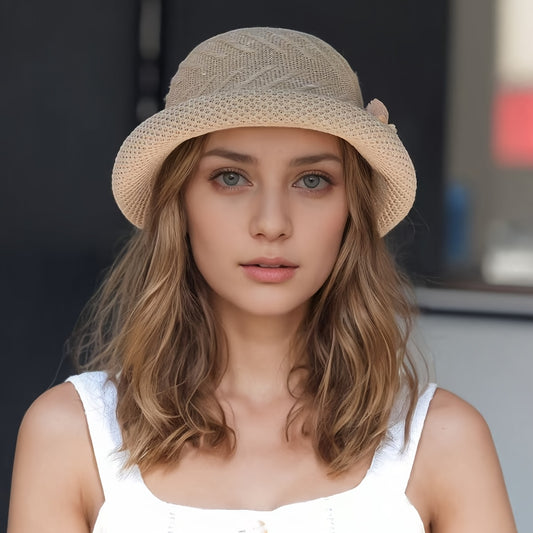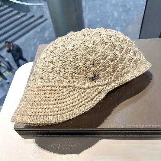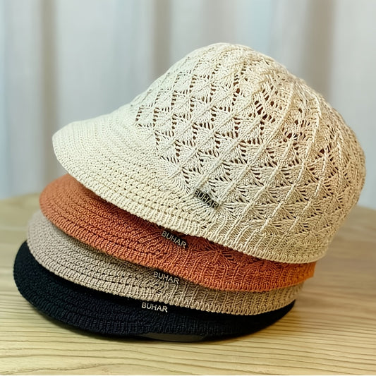 1pc Women's Ice Sliky Fiber Fabric Beret Hat, Lightweight Knit Crochet Design with Openwork Pattern, Sun Protection for Spring & Summer, Multiple Colors (Cream, Orange, Beige, Black, White) - Perfect for Casual Outings & Vaca