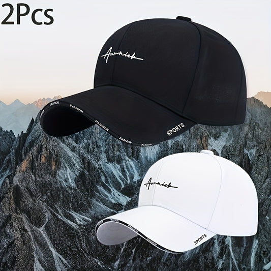 2pcs Fashionable Letter Embroidered Baseball Caps For Men and Women, Spring and Summer Outdoor Sun Protection Hats