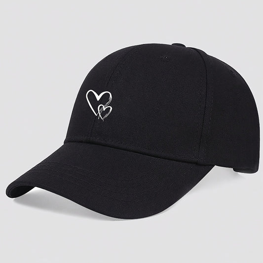 1pc Women's Adjustable Baseball Cap with Love Heart Print - Black Casual Sun Hat for Travel, Vacation & Casual Attire, Breathable Polyester Knit Design