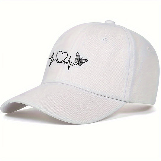 White Butterfly Heartbeat Baseball Cap, Simple Unisex Sports Hat, Sun Protection Outdoor Adjustable Cap