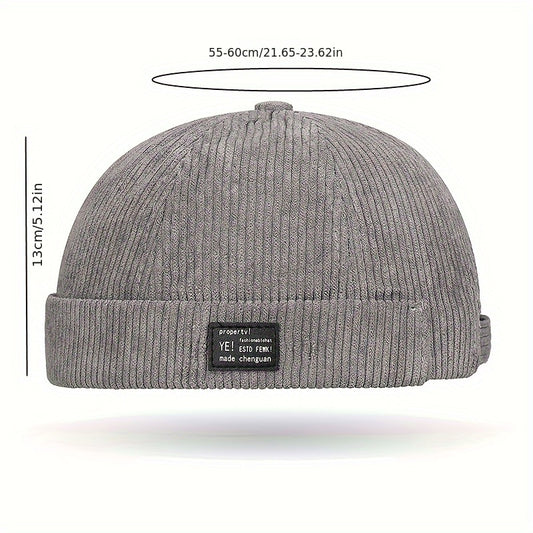 1pc Unisex Corduroy Beanie Cap - Solid Color, Lightweight, Snap Closure, Woven Polyester Fashion Hat for Spring/Autumn, Suitable for Thanksgiving, Hand Wash Only