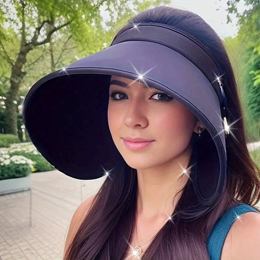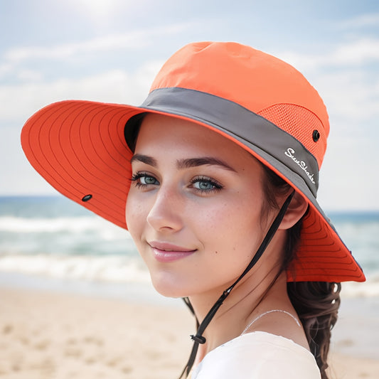 Women's Dual-Tone Sun Hat with Ponytail Hole - Breathable Mesh, Waterproof, Wide Brim for Beach & Fishing, Perfect for Spring, Summer & Fall