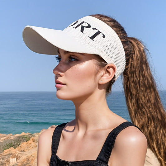 Women'S Breathable Polyester Ponytail Hat, Elastic Visor Cap for Spring/Summer, Outdoor Sports Baseball & Golf Cap, Knitted, No Feathers, Dry Clean Only