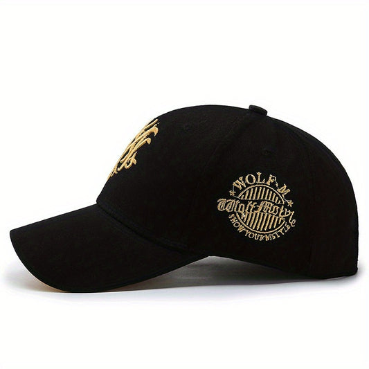 NY Embroidered Baseball Cap - Stylish Black Polyester Hat with Golden "NY" Design, Perfect for Spring & Fall Sports and Casual Wear, Casual Headwear | Embroidered Cap | Polyester Cap
