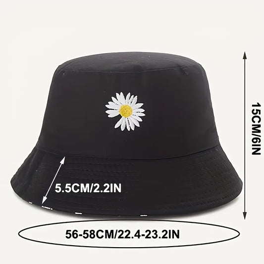 Daisy Graphic Reversible Bucket Hat Black Trendy Breathable Basin Hats Lightweight Sunscreen Fisherman Cap For Women daily use