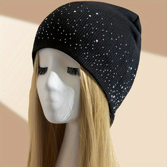 Y2K-Inspired Sparkling Rhinestone Beanie for Women - Breathable, Lightweight Knit Skull Cap with Elastic Fit, Perfect for All Seasons & Outdoor Adventures