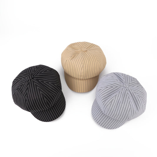 1pc Chic Vertical Stripe Octagonal Cap - Versatile Spring/Summer Korean-Style Beret for Women, Lightweight Polyester, Ideal for Outdoor Hiking, Beach Outings & Street Art