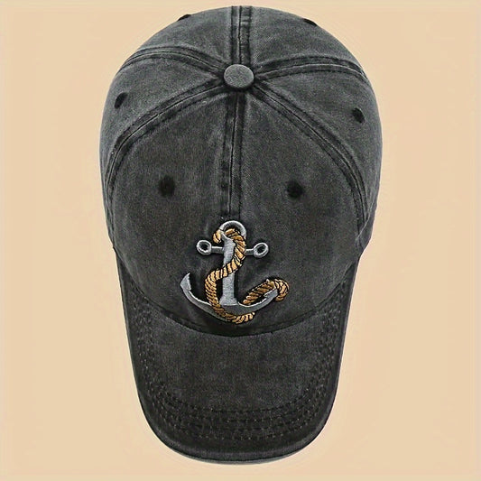 Women'S Embroidered Anchor Baseball Cap, Cotton Breathable Adjustable Sun Hat for Spring/Summer, Travel Outdoor Casual Occasion Cap with Metal Rivet Detail