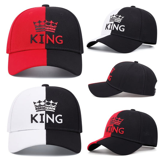 Men's KING Crown Embroidered Letter Pattern Color Block Hip-Hop Snapback Hat, Adjustable Outdoor Casual Cap