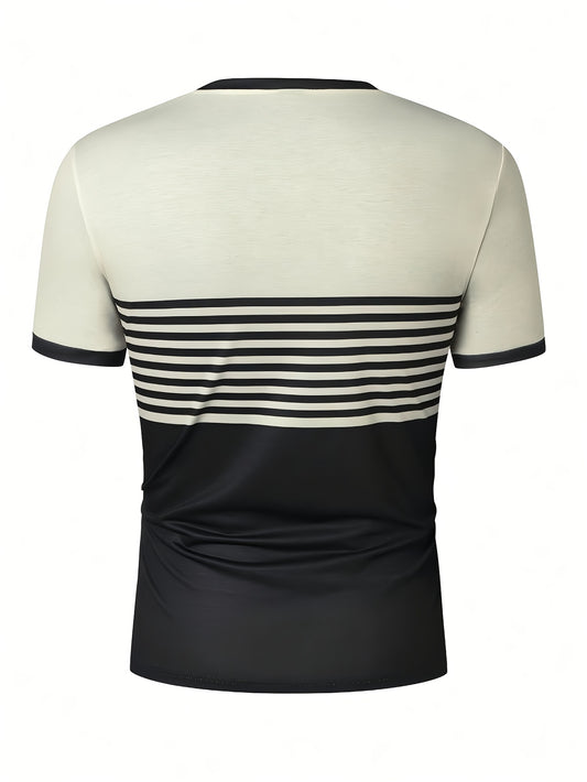 Men's Summer Athletic Short Sleeve Tops & Long Pants Set - Striped Polyester Blend Streetwear Outfit