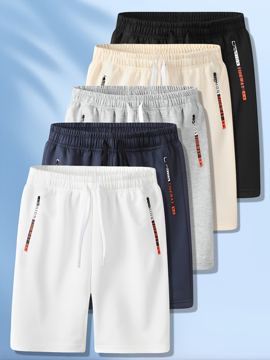 1pc-Men's Breathable Shorts, Men's Knitted Shorts Casual Classic Fit with Zipper Pockets, Summer Drawstring Fashion Shorts, Multiple Colors Available Suitable for Running, Fitness, Training Elastic Waist Summer Beach Shorts w