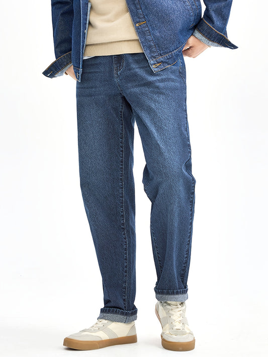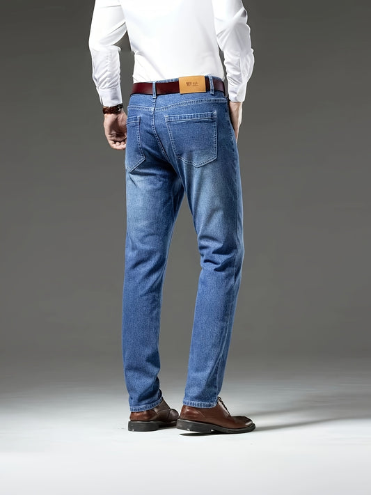 Men's Classic Straight-Leg Casual Jeans - Cotton Blend, Machine Washable, Non-Stretch Denim for All Seasons