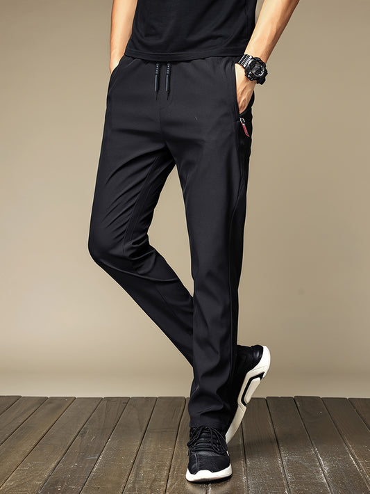 Men's Slim Fit Casual Drawstring Sports Pants, Summer Lightweight Trendy Elastic Quick-Dry Long Trousers, Stylish Comfortable Leisure Wear