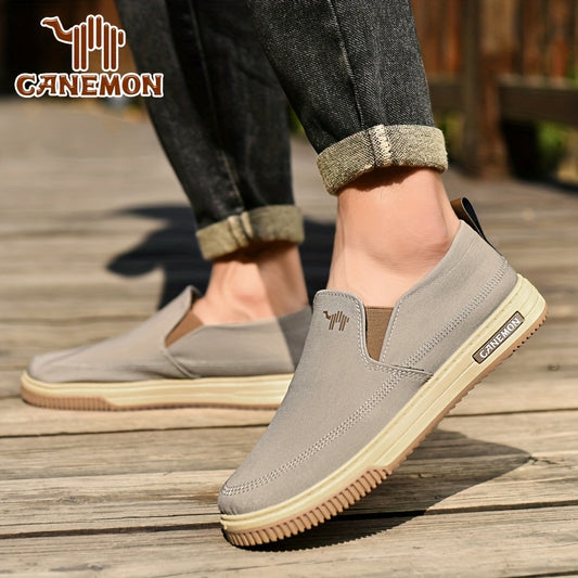 CANEMON Men's Slip-On Canvas Sneakers - Breathable, Non-Slip Soft Sole Casual Shoes with Striped Design, Comfortable All-Season Wear for Outdoor & Everyday Use