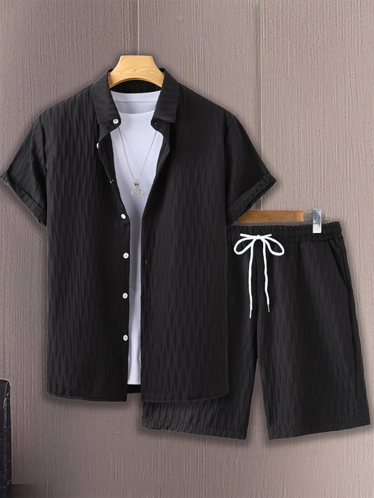 Men'S Casual Outfit Consisting of a Solid Color Short-Sleeve Shirt And Shorts, Two-Piece Set.