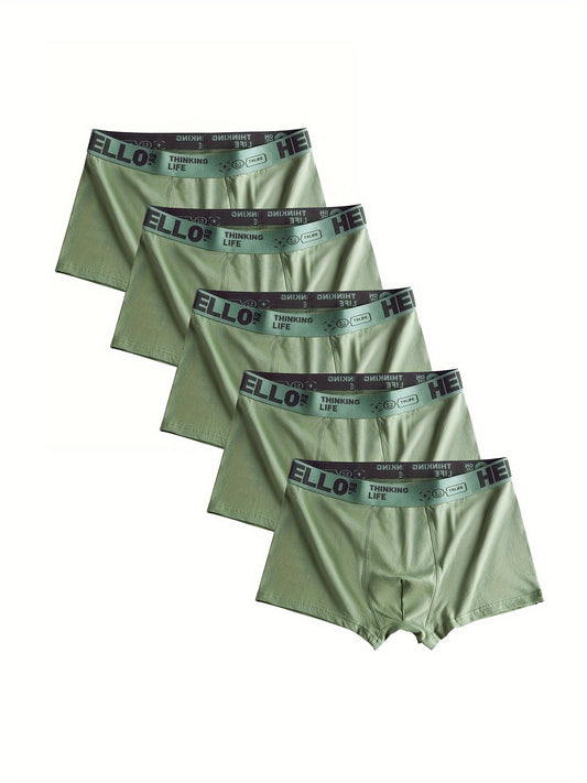 5pcs Men'S High Stretch Breathable Boxer Briefs, Polyester Elastane Blend, Solid Color, Casual Shortie Panty Type, 233g/㎡ & 111g/㎡ Fabric Weight